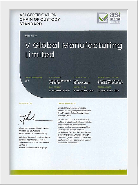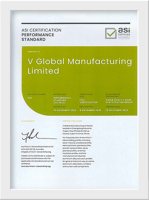 V Global Manufacturing limited is located in Chengdong Industrial Park, Dehua County. The company press machine ranging from 600 Tones to 4000 Tons which specializes in curtain wall,Aluminum window &door , Aluminum cladding, Aluminum railing , Aluminum profile , Aluminum screen, Aluminum Louver etc.